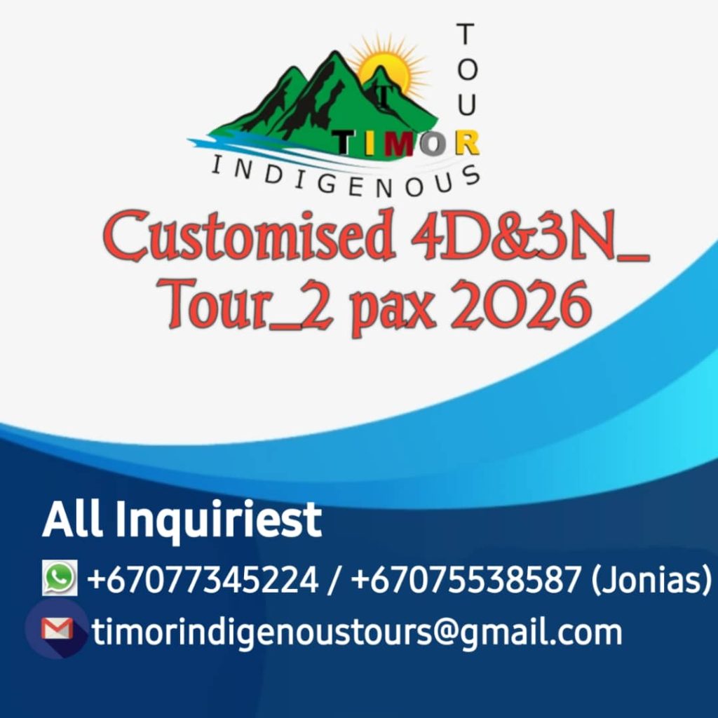 Day & Date Place & accommodation Activity Day 1.  10/05 2025 Dili Arival  Hotel Timor (L/D) AM/PM Dili arrival, transferred to the Hotel for check in  Visit Chega Museum,  Motel church and Santa Cruz Cemetery  Visit to Cristo Rey statue for sunset view Dinner will be served at Beachside Area Branca   Day 2.  11/05 2025 …